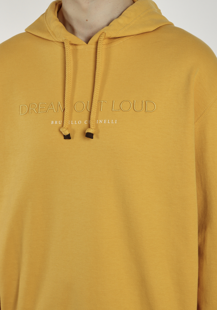 Толстовка Brunello Cucinelli, цвет желтый, 93% хлопок и 7% полиамид, создает идеальную комбинацию элегантности и комфортности. Лаконичный крой с капюшоном подчеркивает современный тренд минимализма, а текстура ткани обеспечивает мягкость и дышащую одежду. Фактура ткани придает изделию легкость и изысканность, отражающую дух бренда.