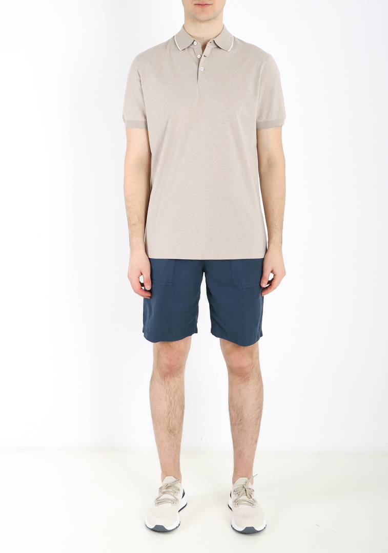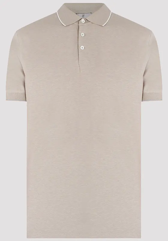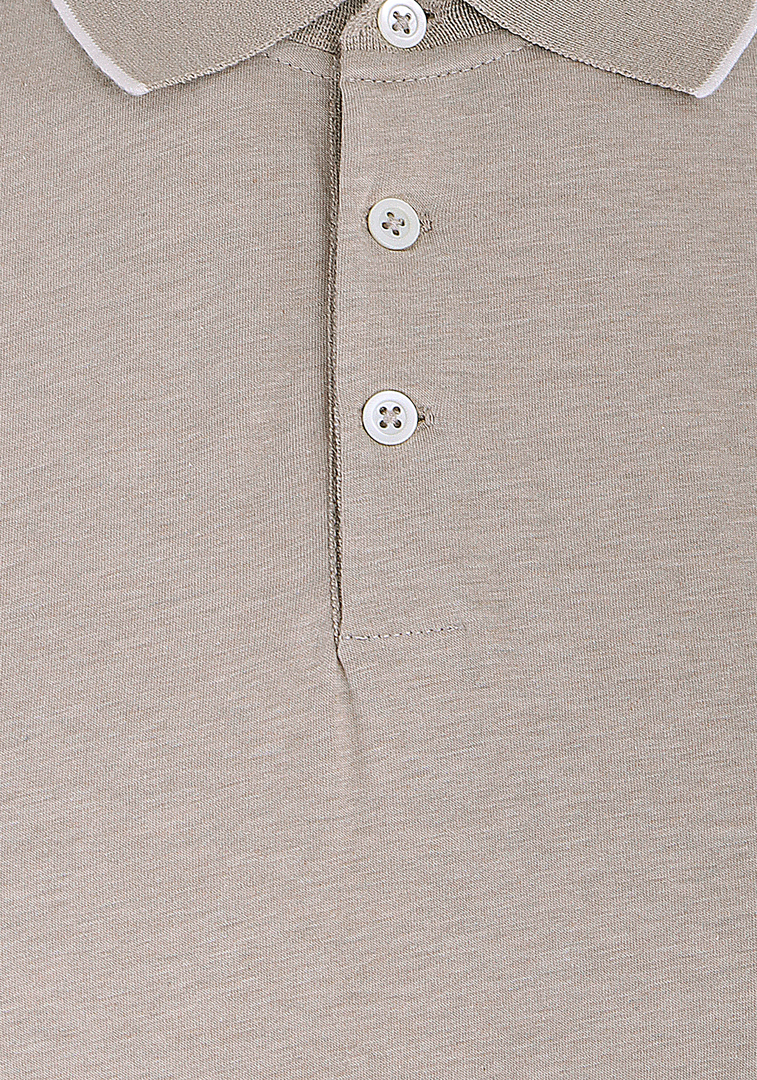 Футболка поло Brunello Cucinelli, бежевого цвета, выполнена из 100% хлопка, обеспечивая комфорт и легкость. Тонкая фактура ткани придает изделию элегантность и лаконичность, подчеркивая стильный тренд сезона. Контрастная отделка воротника добавляет нотку оригинальности, а классический крой слим-фит создает идеальную посадку, подходящую для любого случая.
