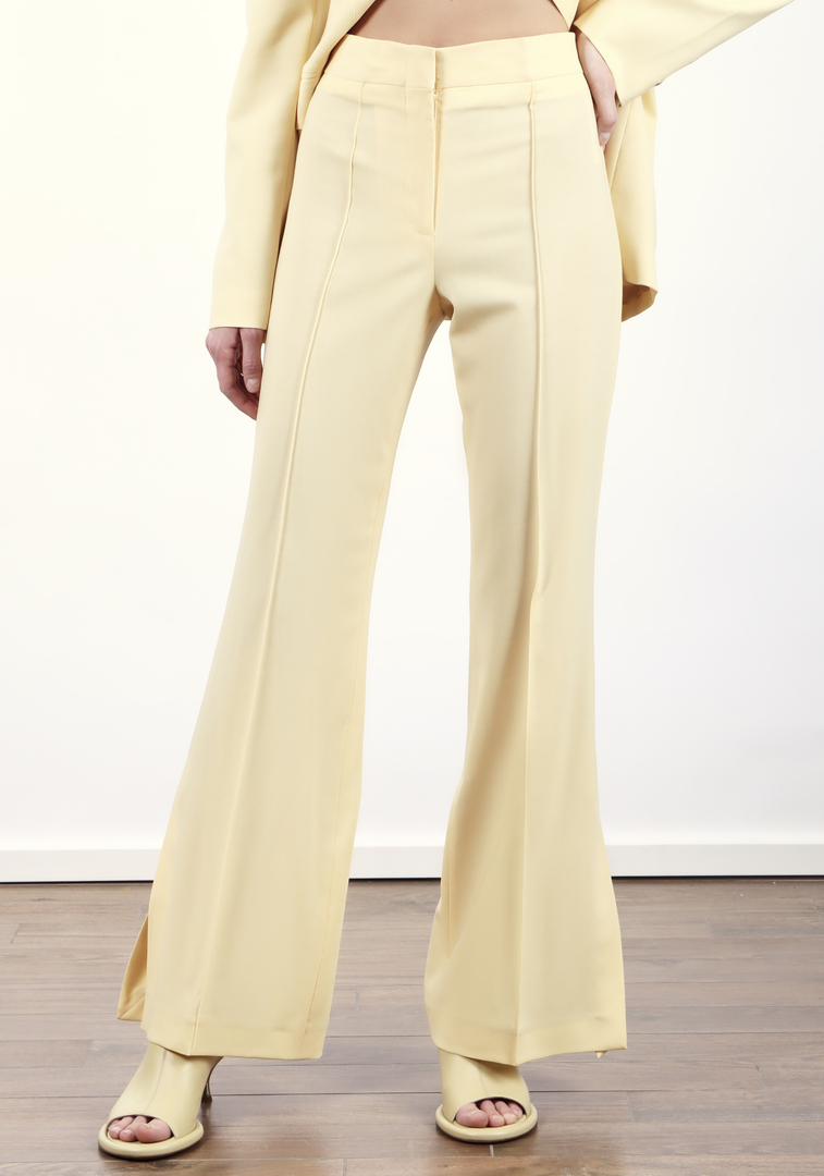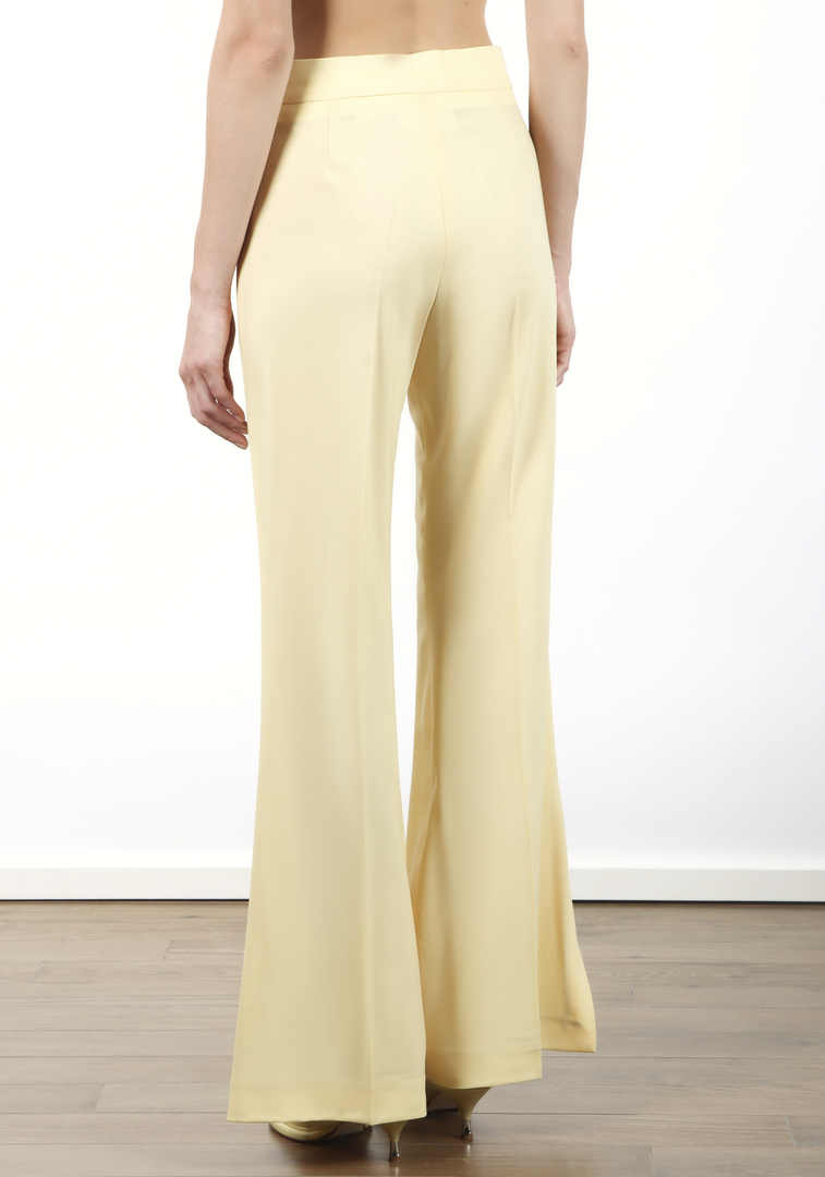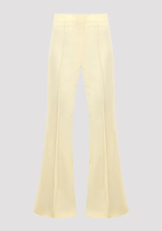 Брюки клеш от итальянского бренда Erika Cavallini. Модель выполнена из тонкой шерсти, с высокой линией талии, с простроченными стрелками.