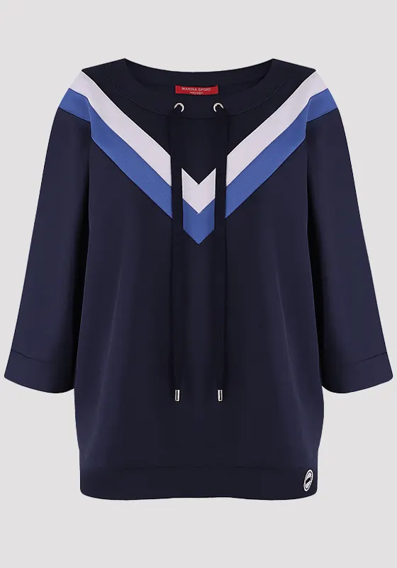 Толстовка Marina Rinaldi, цвет синий, 97% полиэстер и 3% эластан, создает идеальную комбинацию комфорта и стиля. Лаконичный крой с широкими рукавами и контрастной отделкой в виде треугольников на груди придает модели современный и элегантный вид. Ткань мягкая и дышащая, обеспечивая комфорт во время ношения. Стильная модель подчеркивает лаконичность и универсальность, подходя как для повседневных прогулок, так и для более формальных встреч.