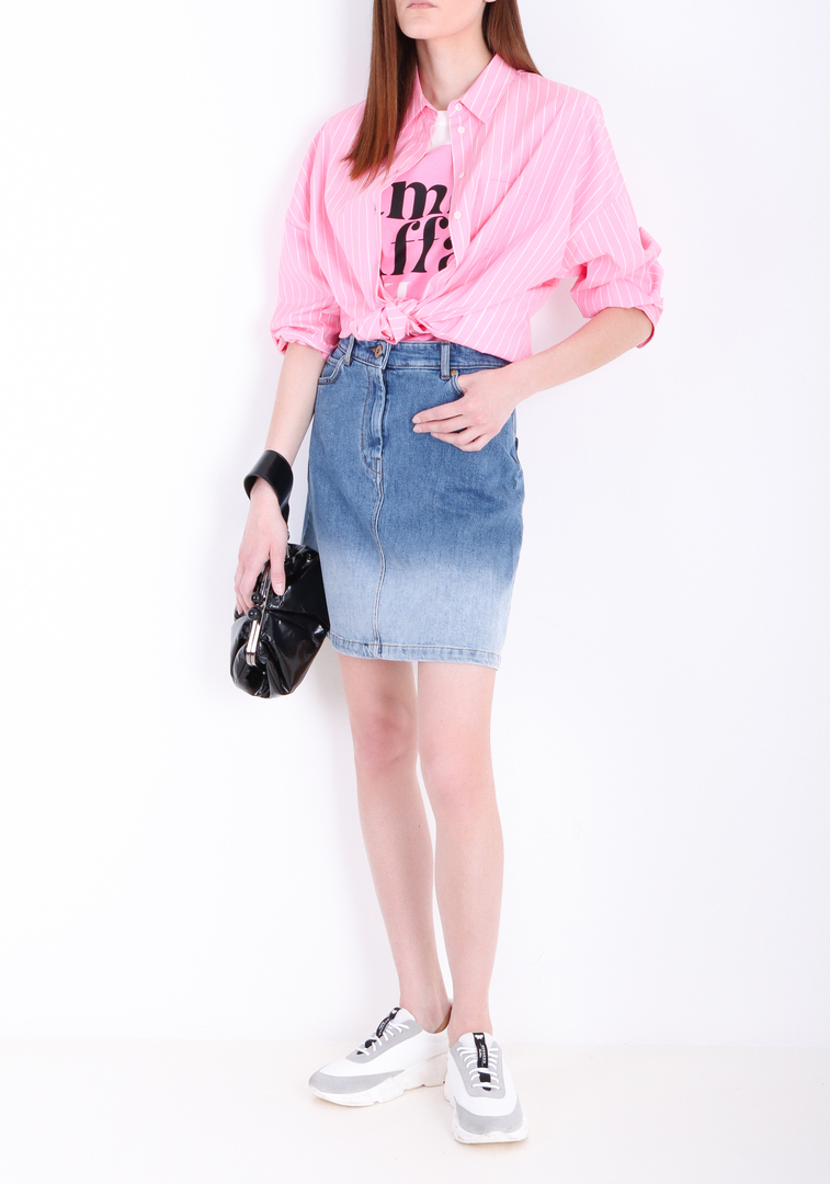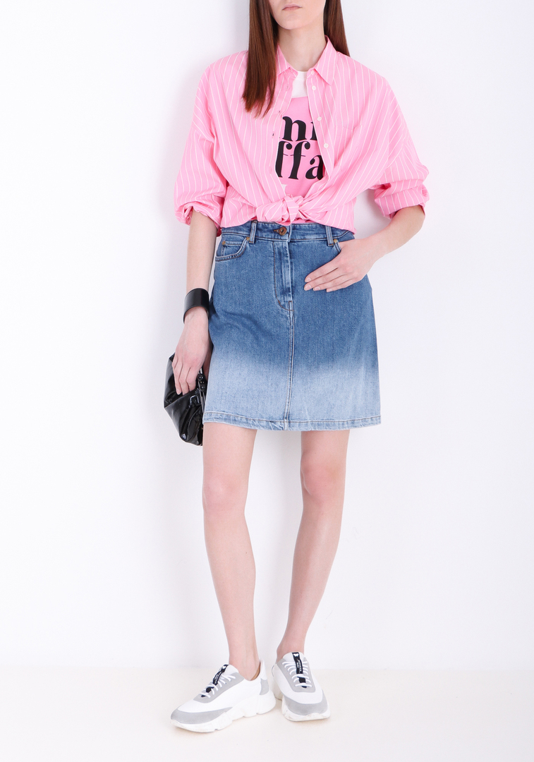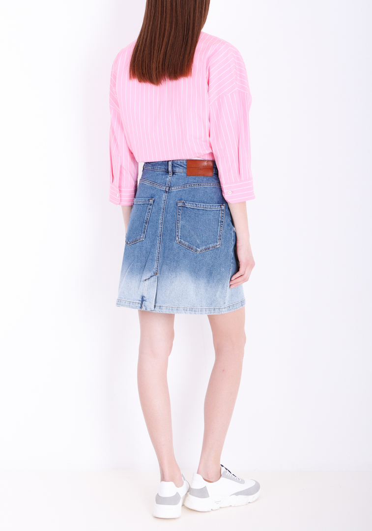 Юбка джинсовая Max Mara Weekend, темно-синего цвета, выполнена из 98% хлопка и 2% эластана, обеспечивая комфорт и мягкость. Тонкая джинсовая ткань придает изделию легкую текстуру, а классический крой с завышенной талией подчеркивает элегантность. Декорирована простым металлическим пуговицами на поясе, добавляющими нотку стиля. Стильная модель актуальна для любого дня недели, сочетается с блузками или топами, создавая лаконичный и модный образ.