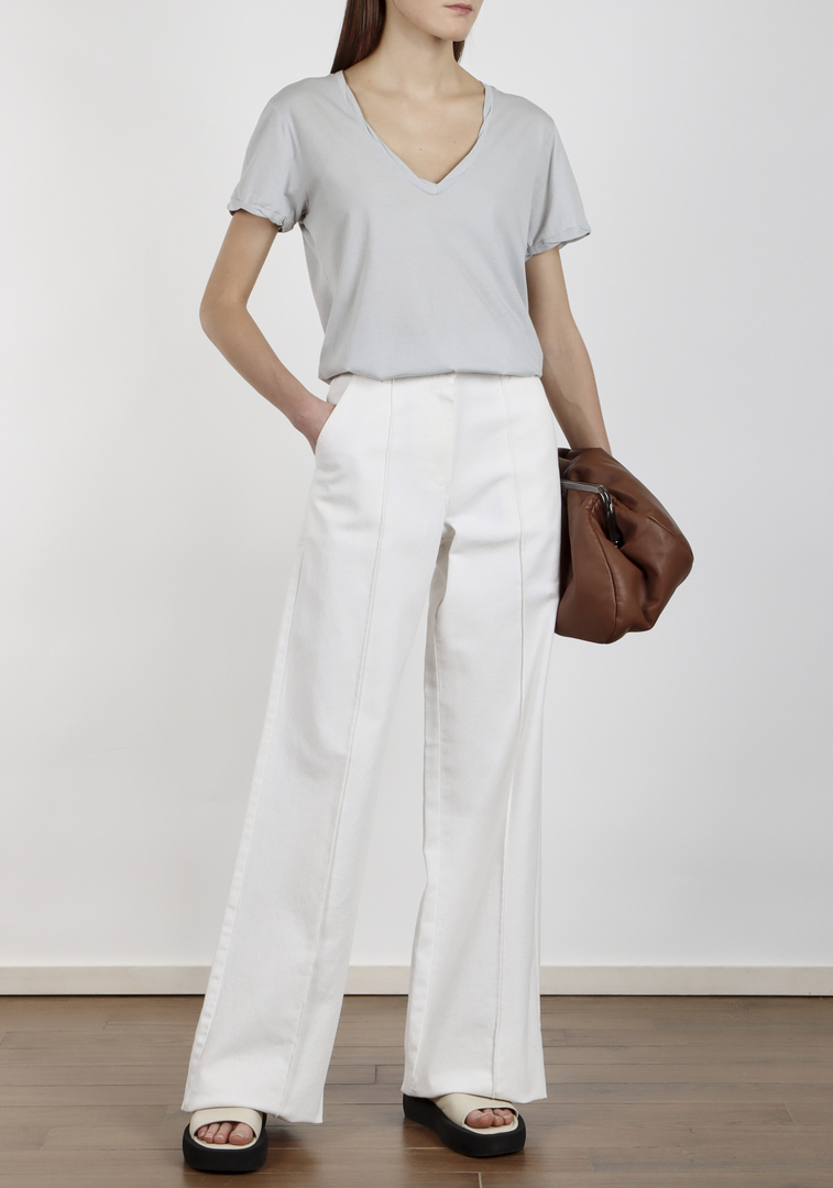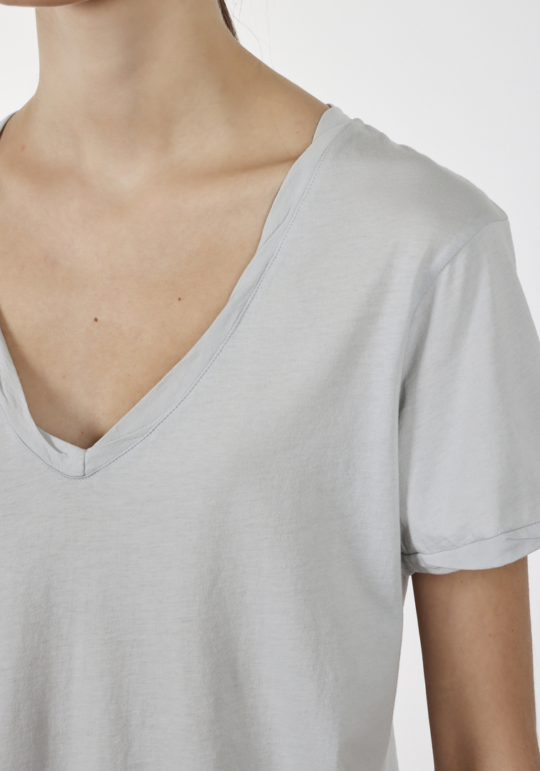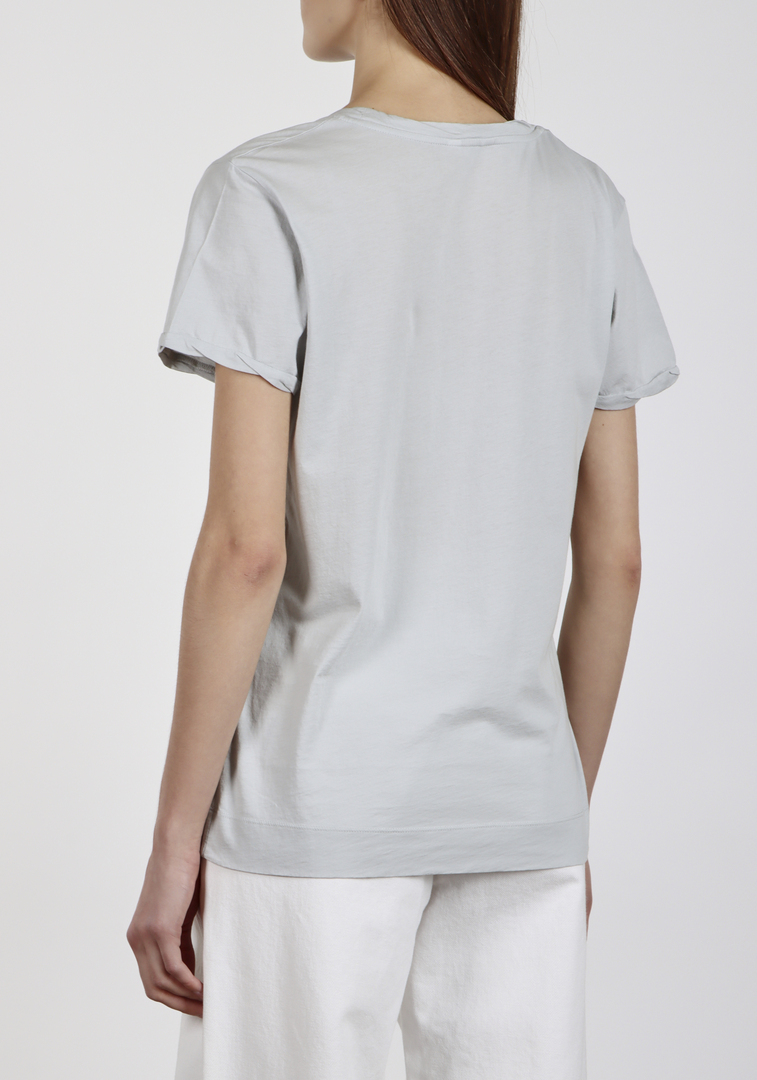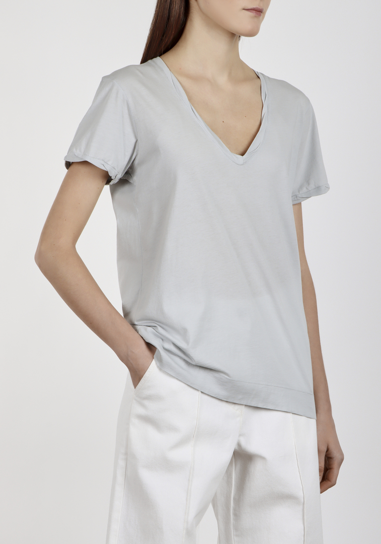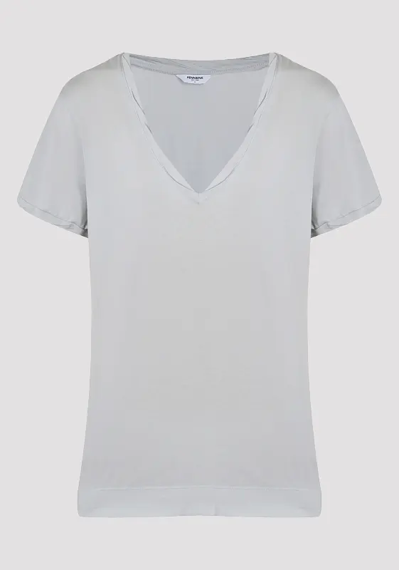 Футболка PENN&INK N.Y, цвет серый, 100% хлопок. Лаконичная модель с глубоким V-образным вырезом и короткими рукавами, выполненная в стиле минимализма. Ткань мягкая и дышащая, подчеркивая элегантность и комфорт.
