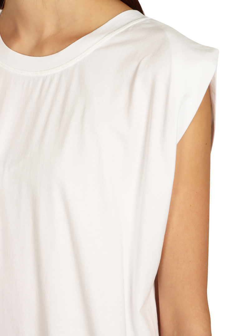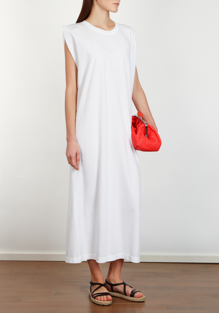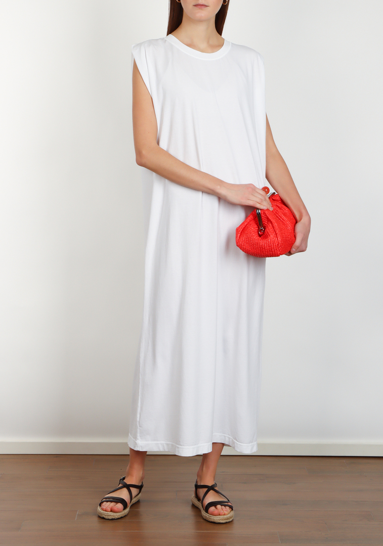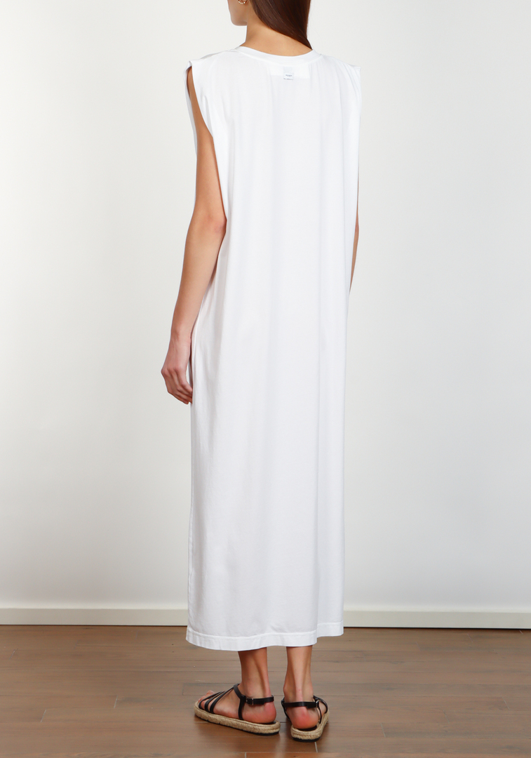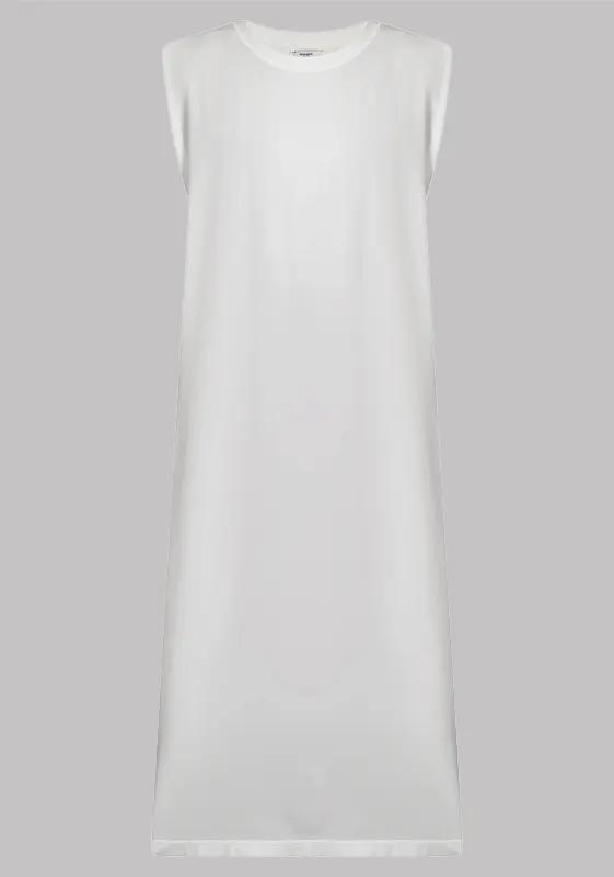 Платье PENN&INK N.Y. в белом цвете, выполненное из 95% хлопка и 5% эластана, обладает лаконичной фактурой, подчеркивающей классический стиль. Прямой крой с круглым вырезом горловины создает элегантный силуэт, идеально подходящий для любого случая.